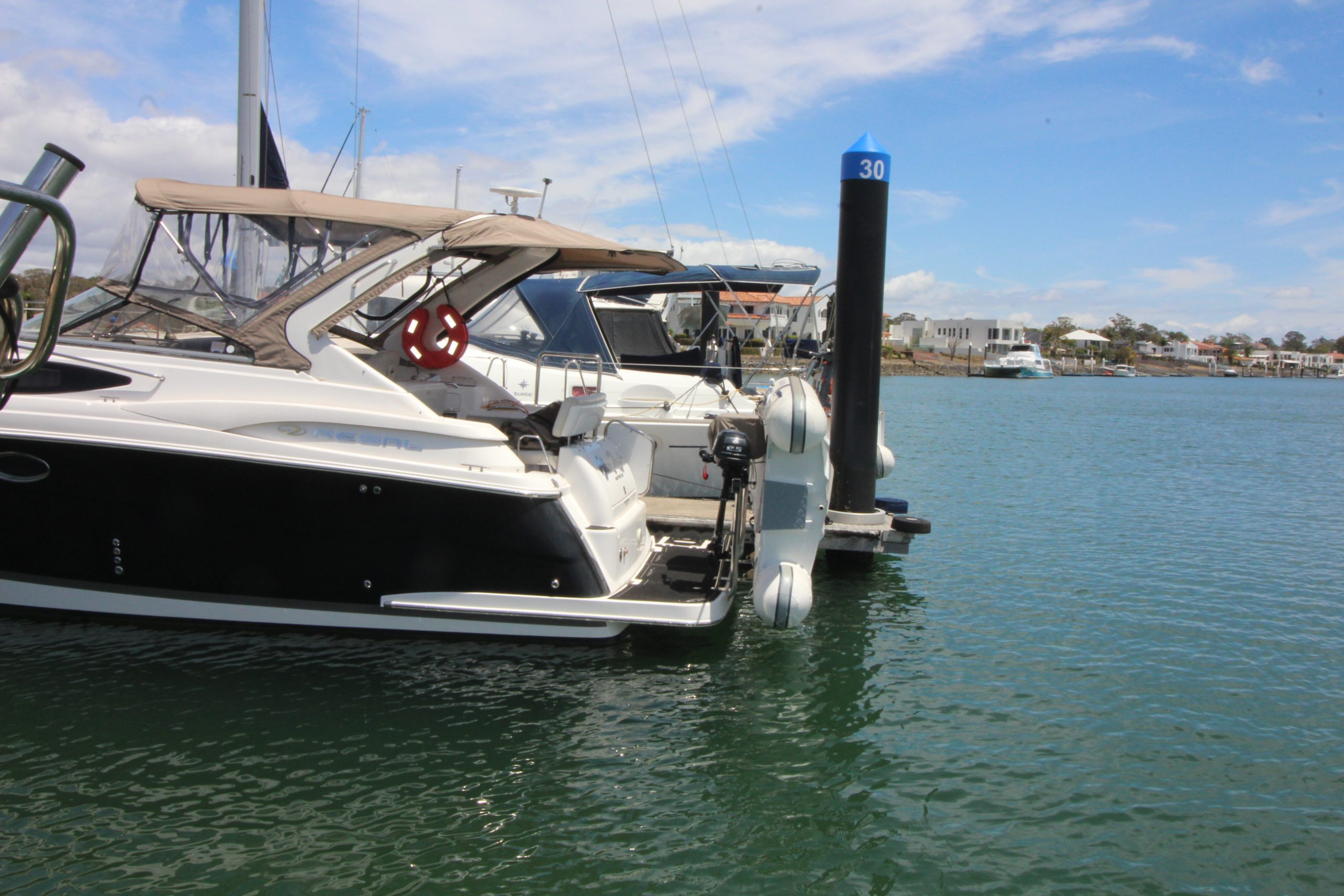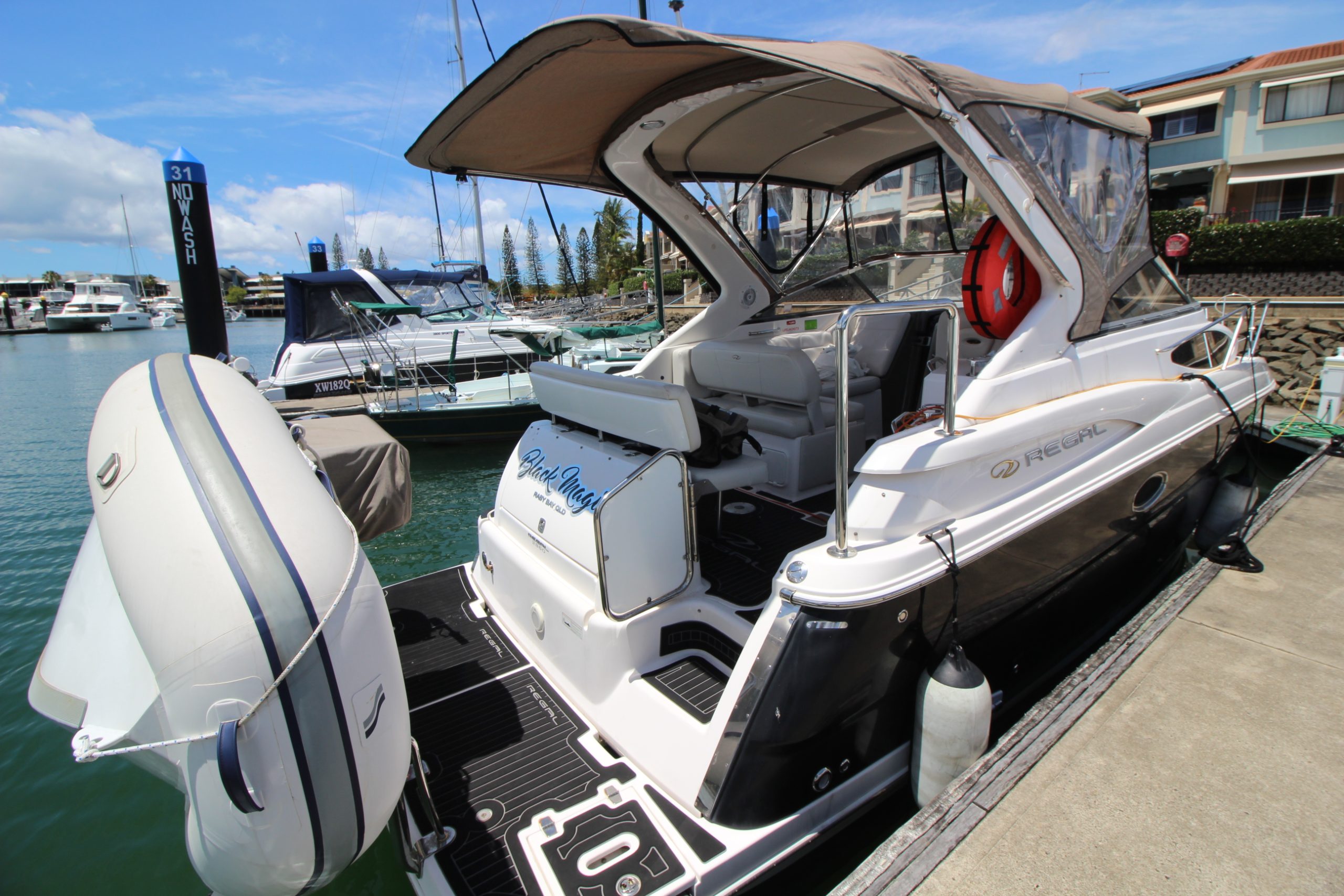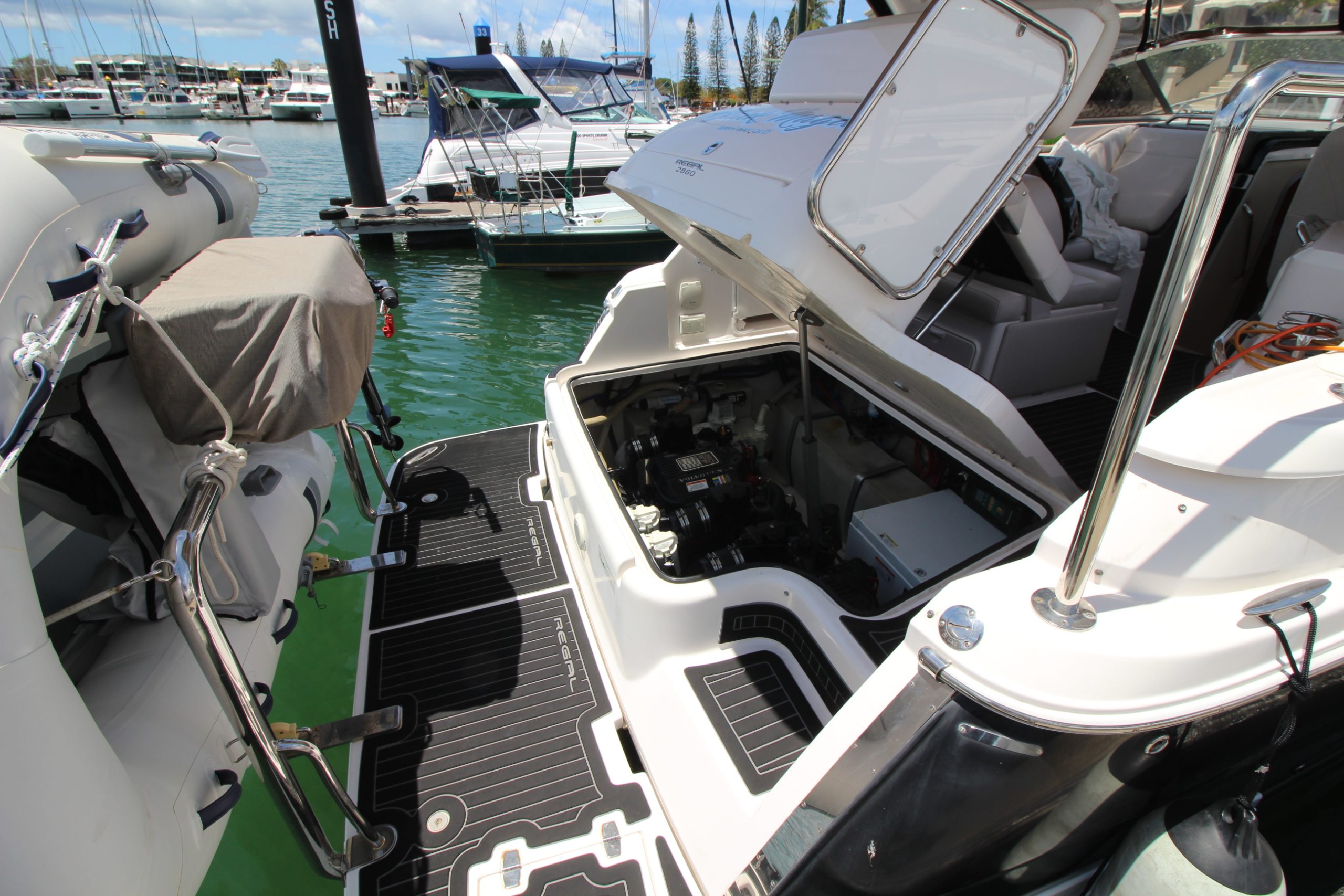 2009 model year Australian dealer delivered Regal 2860 Window Express Sports Cruiser, maintained to a very high standard and with loads of service history. She has twin Volvo engines, Kohler generator, air conditioned and is in great condition and would suit the most fastidious buyer. All covers and clears are in good condition with rear stainless rail, s/s BBQ, new tender and outboard and full canvas sunshades. The boat has just been recently serviced, including new risers and manifolds and ready to go, call Action Boating on 07 5564 1995 Call Now for more information.