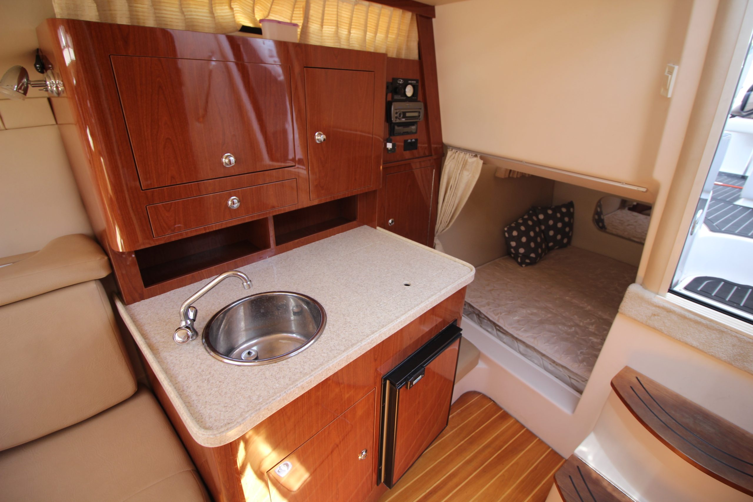 | Features | Twin Volvo 4.3 V6 sterndrives with a low 461 hours. Kohler Genset, air conditioning, TV/stereo, overnight accommodation for 4. |